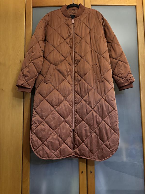 Довге тепле стьобане пальто, у розмірі 12, на L-ку.