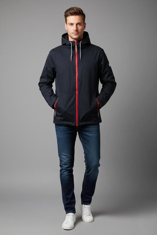 Продаю стильную и практичную мужскую куртку от известного бренда Cropp (Design Unit). Эта куртка - идеальный выбор для изменчивой погоды весной, прохладным летом или осенью. Цвет: классический темно-синий/черный (Deep Navy/Black) легко сочетается с любым гардеробом. Дизайн: Современный крой анорак/ветровки с капюшоном. Главный акцент – яркая красная молния и стильные серо-красные шнурки, которые придают модели уникальность и динамичность. Материал: Плотный, качественный материал, отлично защищает от ветра и дождя. Внутри - сетчатая подкладка для лучшей циркуляции воздуха. Состояние: отличный, без дефектов и потертостей. Была в аккуратном использовании. Размер: M (Medium). Особенности и Детали Бренд: Cropp Design Unit - гарантия качества и современного уличного стиля. Капюшон: регулируемый, с контрастными шнурками. Карманы: Вместительные боковые карманы на молнии с красными акцентами.