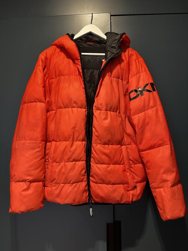 Стильна осіння куртка DKNY Яскраво-помаранчева пухова куртка з капюшоном, тепла та дуже легка. Комфортний вільний крій, глибокі кишені, двостороння блискавка з брендовим бігунком. Ідеально підходить для щоденного носіння в холодну погоду. Стан: хороший, носилась акуратно. Гарний варіант для тих, хто шукає теплу й стильну осінню куртку.