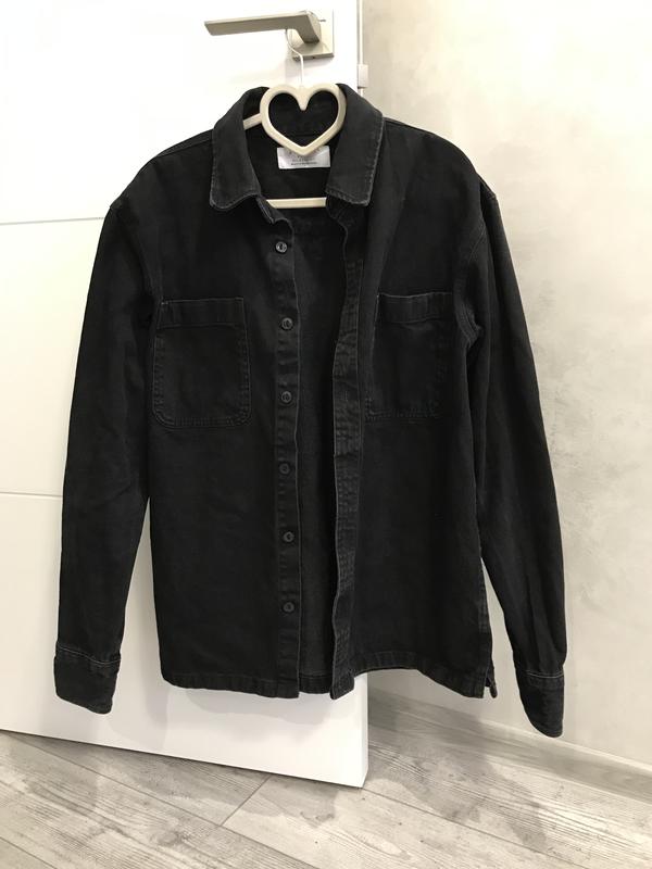 Якісна сіро чорна джинсова прямого крою куртка рубашка з карманами Загал Довж 70см Довж рукава 64см в плечах 49см ПОГ53см Вказаний розмір s Стан нової