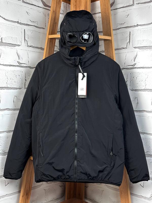 Мужская утепленная куртка c.p. company google jacket chrome черная с линзами размер м| л