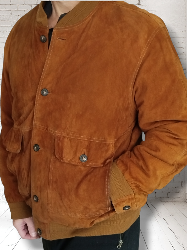 Классная рыжая куртка бомбер из НАТУРАЛЬНОЙ замши! Мягкая, приятная на ощупь, отлично садится по фигуре! Куртка на подкладке, без утеплителя! Большое количество карманов! Размер ориентировочно 54-56. Длина 74 см, Полуобхват груди 69 см, Длина рукава 65 см, Плечи 62 см. Стан красивый,целый, умеренные следы пользования в виде затертостей у карманов, на рукавах, на подкладке катышки. Благодаря цвету и фактуре замши, в глаза не бросается (на фото видно лучше, нож в реальности). В наличии большой ассортимент одежды обуви и аксессуаров для всей семьи!)
