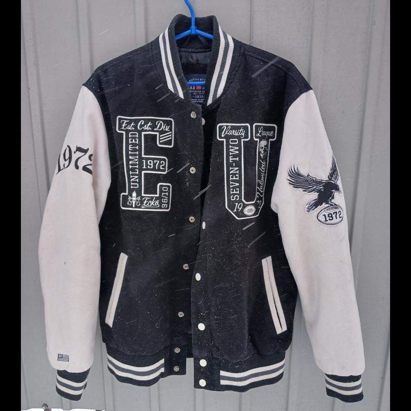 Б/у, одноразовую пишущую стирку, загрязнялась на рукавах,видно на фото, я не в состоянии, потому что слишком много всего,неpos. Sostrust. Name сами, чтобы потом не было претензий,ник никого не заставляет, но это просто испачкалась,пятна не жирные, отстирывается.Замеры:полуобхват груди-55см,плечи-48см,длина по спине-78см, длина рукавов-66см, длина внутреннего шва рукавов-50см,бомбер,застегивается на женскую сторону,з левая на право, позволит быть как мужская,так и женская.Ecko UNLTD,Medium,Authentic classic,Trademark,1972,size-M,91%polyester,1%elastane, подкладка-100%polyester,made in China.