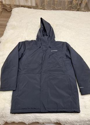 Куртка Columbia чоловіча темно синя. Довжина куртки 83 сантиметри, довжина рукава 70 сантиметрів, пів обхват грудей 61 сантиметр.