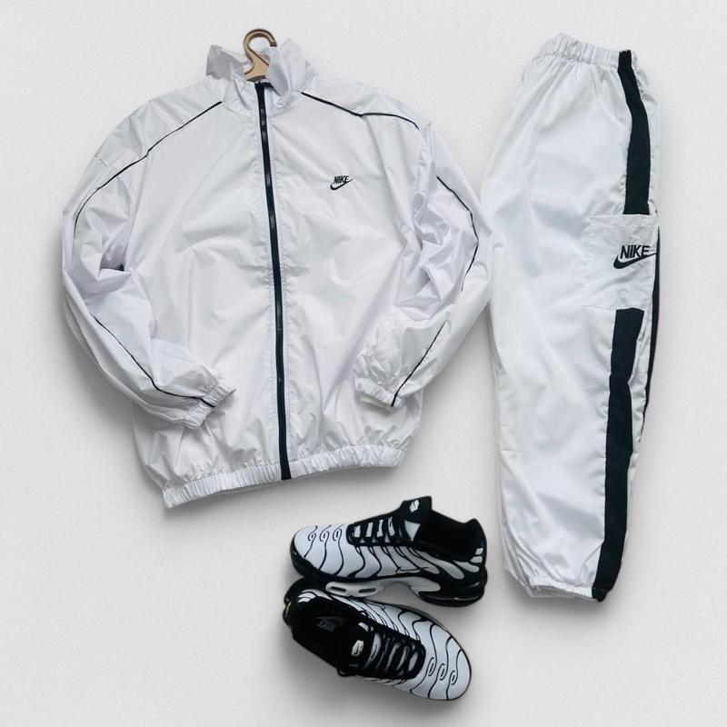 Стильний спортивний костюм у білому кольорі з контрастними чорними деталями — ідеальний вибір для тих, хто любить мінімалізм, але хоче виглядати помітно. Лаконічний дизайн у поєднанні з фірмовими акцентами створює сучасний streetwear-образ, який легко вписується і в повсякденний стиль, і в активний ритм життя. 🔹 Куртка Легка вітровка на блискавці з високим коміром захищає від вітру та додає образу спортивної чіткості. Еластичні манжети та низ забезпечують зручну посадку, а тонкі чорні лінії підкреслюють силует і додають характеру. 🔹 Штани Вільний крій дарує комфорт у русі, а еластичний пояс добре фіксується на талії. Чорна вставка збоку візуально витягує силует і гарно поєднується з курткою, створюючи цілісний комплект. 🔹 Загальний стиль Біло-чорна палітра виглядає свіжо, акуратно й універсально. Костюм легко комбінується з кросівками, худі або футболками — підійде як для прогулянок містом, так і для подорожей чи щоденного носіння.