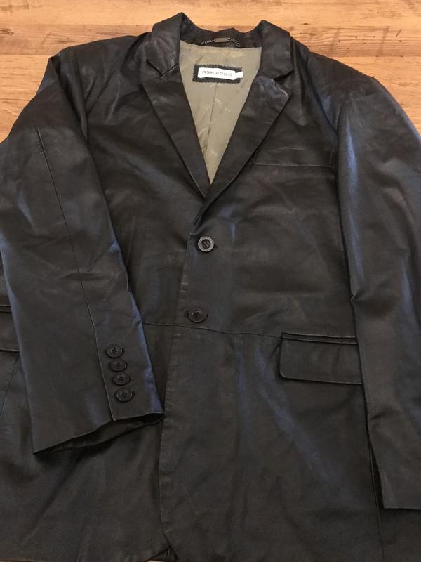 класична чоловіча куртка від дорогої знаменитої англійської фірми Ashwood , натуральна шкіра . Плечі 51 см, рукав 65 см,напівобхват талії 57 см, довжина-79 см, напівобхват грудей 61 див.