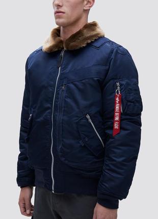 Оригінальна чоловіча куртка представлена в casual колекції американського бренду Alpha Industries в сучасному варіанті класичної версії В-15. Демісезонний бомбер розроблений з міцного, стійкого до стирання нейлону, який має вологовідштовхувальне просочення. Надійний захист від осінніх холодів гарантує легкий синтетичний наповнювач і трикотажні манжети на рукавах. Знімний комір із штучного хутра забезпечить додаткове тепло у вітряну погоду. Одна пара бічних врізних кишень закривається на блискавці, інша пара клапанами на кнопках. Також є велике відділення на блискавці з безліччю кишень усередині, куди можуть розміститися документи або планшет. Фронтальна застібка-блискавка доповнена виворітною вставкою, яка перешкоджає застряганню під час застібання та задування вітру. Стильна стебнована підкладка яскравого червоного кольору освіжає дизайн.