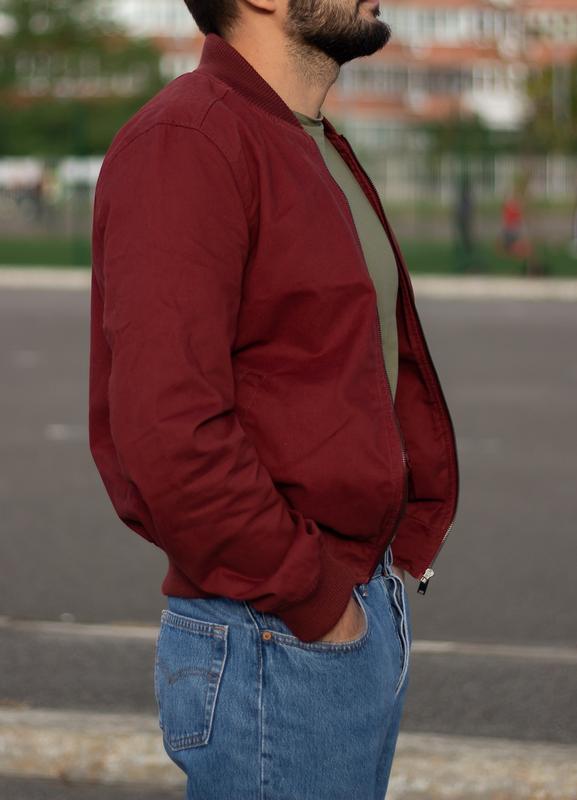 Мужской бомбер Casual by Gemo Состояние: Очень хорошее Размер: S Материал: Хлопок, Полиэстер Цвет: Бордовый