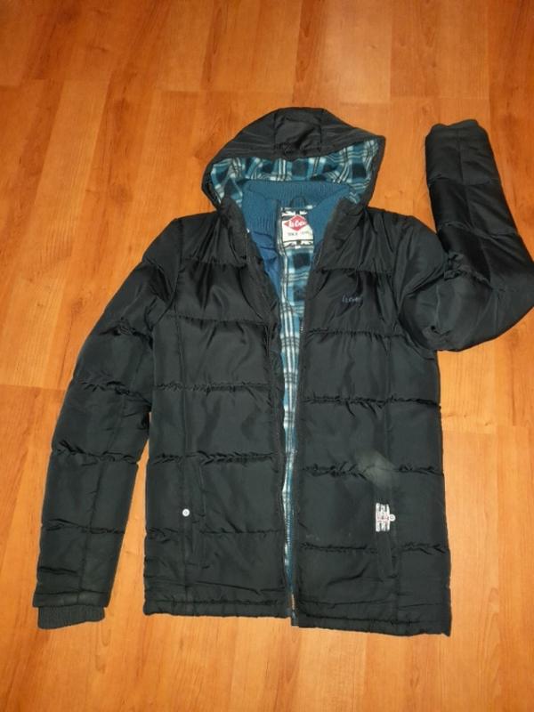 куртка зимняя , теплая , с капюшоном, синтепон + теплая подкладка. 2 кармана, рукава с манжетами.темно синего цвета. качество отличное.
