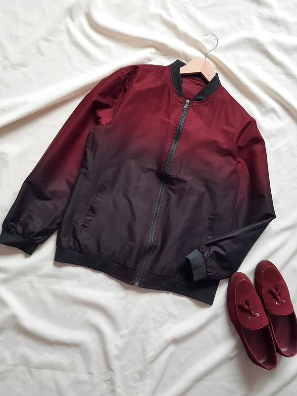 Шикарний бордовий бомбер, омбре переходить з марсала до чорного. Заміри: пог 56-57 Пот 52-53 Довжина 66 Рукав 63