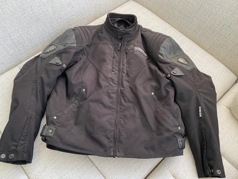 Куртка по сезону осень/зима. С защитными встаками на спине и рукавах. Куртка одевалась несколько раз (потом перешли на кожу...). Размер XL, на высокого мужчину (рост 195)