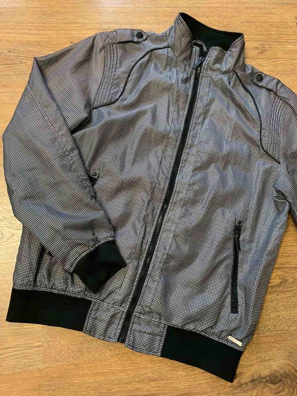 стан ідеальне в клітку підкладка сітка без утеплювача комір стійка застегуется на блискавку є дві кишені на блискавці рукав і низ куртки на манжеті м'яка легка зручна виміри плечі 46 рукав 63 пог 57 піт 56 низ по 43+ довжина 59