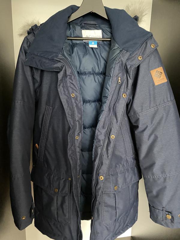Продам стильную мужскую куртку Columbia, размер S, цвет темно-синий. Наполнитель пух-перо. Куртка очень лёгкая и теплая, зима! Замеры: длина по спинке 82 см., плечи 46?см., ПОГ 85 см., рукав от плеча 67 см. Состояние идеальное, без дефектов.