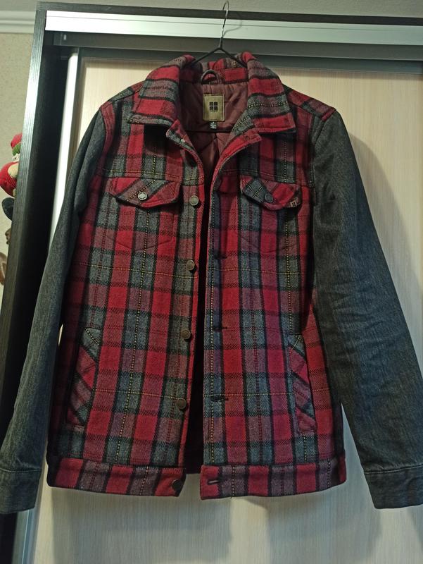 Отличная, нетривиальная комбинированная куртка. Носилась недолго. Выросли:) Карманы врезные, нагрудные на кнопках, один внутренний на липучке