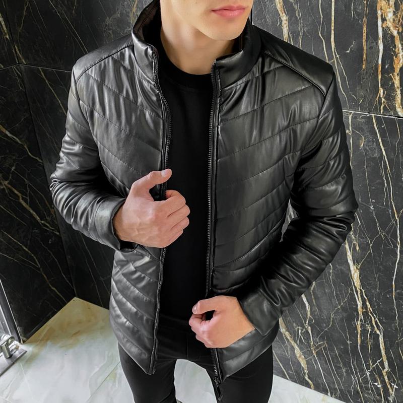 💬 - Стеганная мужская куртка. Правильное и удачное сочетание горизонтальных и косых выстрочек по периметру всего изделия, придаёт куртке дополнительной оригинальности. - Сезон весна/осень. - Ткань верха - эко кожа, прочный и в то же время мягкий материал, что делает куртку износостойкой и комфортной в носке. - Плотная подкладка, которая не пропускает воду и порывы ветра, что дополнительно защищает от непогоды. - Силиконизированный утеплитель 150 плотности - отличный материал который удерживает тепло но в тоже время не парит. - Воротник - стойка. - В изделии три кармана: два боковых кармана и один внутренний потайной карман. - Температурный режим -0 - (+15) С - Размеры S M L XL XXL XXXL