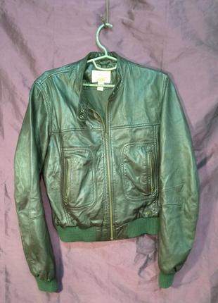 Куртка зі шкіри ягняти, ніжна, легкий синтепоновий утеплювач. Розмір L. Стан нової.Плечі 42, рукав 66, довжина по спинці 57, груди по 53, талия46 у свободі