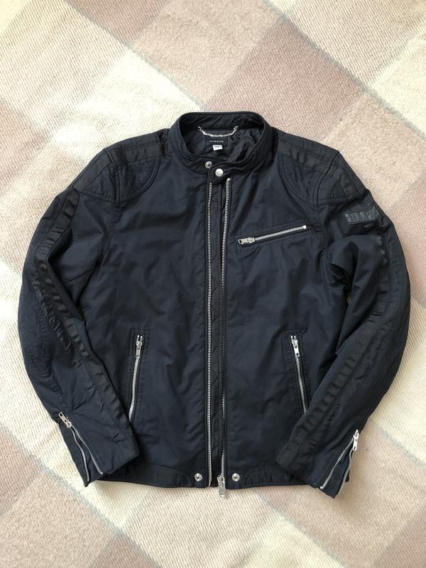 Куртка Diesel стилизированная под мотокуртку размер S (замеры: плечи 42, ПОГ 51, низ 47, рукав 64, длина по спине 60 и ворот 3). Состав: верх 65% хлопок, 35 нейлон, подклад 100 нейлон, утеплитель полиэстер, шеврон кожаный. Фурнитура родная брендированная. Состояние новой вещи без дефектов/нюансов.
