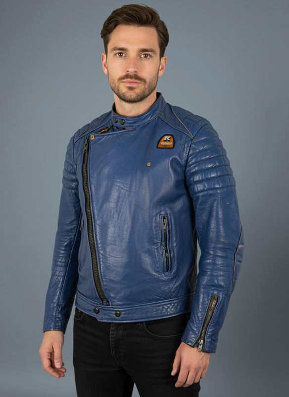 Kershaw leathers винтажная кожаная косуха 70-х, синяя байкерская мотокуртка (made in engla...