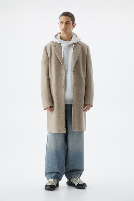 Фетрове пальто з лацканами та кишенями. Застібається на два ґудзики Розмір по бірці L, підійде також для М Довжина по спині 98 см Ширина в плечах 48 см Ширина в грудях 56 см Довжина рукава 66,5 см Зовнішня частина 100% ПОЛІЕСТЕР Підкладка 94% ПОЛІЕСТЕР - 6% ЕЛАСТАН Колір пісочний Нове
