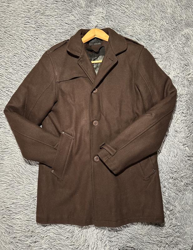 Тепле пальто для хлопця/чоловіка в прекрасному стані. Дуже гарний шоколадний колір. Неймовірна якість! Видно по швам, підкладці, фурнітурі. Деталі: - великі зовнішні кишені - внутрішня кишеня на липучці зліва - маленька кишеня на блискавці на лівому рукаві - декоративні ремінці на рукавах, ззаду, на плечах Сезон: холодна осінь, тепла зима. Матеріал: 60% шерсть, 35% віскоза. Утеплювач синтепон. Розмір на бірці L. Заміри: ширина (півобхват) - 53 см, ширина по плечам - 45 см, довжина від плеча - 76,5 см, довжина по спині (без комірця) - 83,5 см, довжина рукава - 69 см.