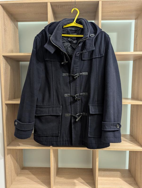 Мужское темно синее пальто, дафлкот, теплое, на холодную весну. Очень хороший состав - 62% шерсти. Стан хорош, дефектов нет, только петельку я сама пришивала, чтобы было за что цеплять на крючок. Планомирный XXL, носил мужчина ростом 193 см, длина рукава идеальна.