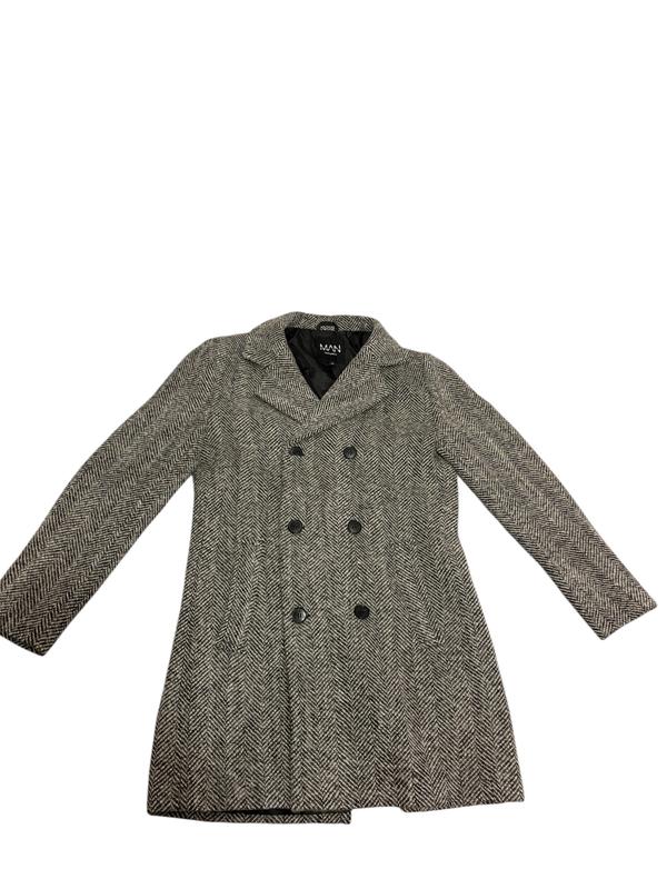 Двобортне пальто Boohoo Man з вовняної суміші в ялинку, стан новий, вовни у складі 46% Оновіть свій зимовий гардероб цим стильним пальто Boohoo Man Wool Blend Herringbone Double Breastee. Класичний дизайн має двобортну застібку спереду, що робить його ідеальним для будь-якої нагоди. Пальто виготовлене з високоякісного вовняного матеріалу, що забезпечує тепло та комфорт одночасно. З модним візерунком «ялинка» та елегантним чорним кольором, це пальто стане ідеальним доповненням до гардеробу будь-якого чоловіка. Воно розроблене для звичайного розміру та сидить точно за розміром. Пальто ідеально підходить для будь-якого відділу, будь то робота чи відпочинок. Не пропустіть можливість додати цей позачасовий екземпляр до своєї колекції.