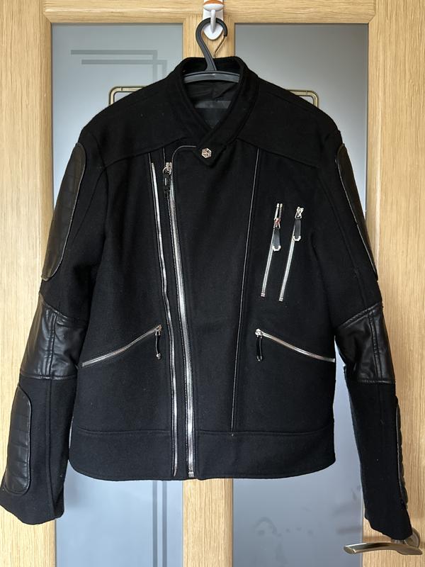 ЗАХОДЬТЕ НА СТОРІНКУ! ТАМ БАГАТО ЦІКАВОГО! ПРОДАЮ СВОЄ! Вовняне пальто/піджак/куртка зі вставками зі штучної шкіри Має дві застібки на змійку, яка регулює обʼєм. На рукавах - вставки зі штучної шкіри Два кармани на змійці Ворот - стійка на кнопці Довжина виробу 67 Ног 49, +2 см Напів обхват по низу - 48, + 2 см Плечі 50 Рукав 66 На рукавах - змійки для розширення (фото) Тримає добре форму Без подряпин на шкіри! Без дефектів! Змійки всі працюють