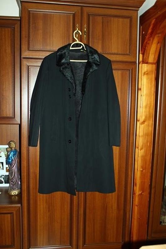 чоловіче чорне пальто з натуральним хутром (нерпи), підкладка овчина. Розмір 50.
