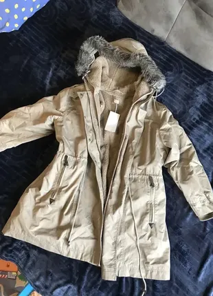Парка новая не однажды не одевалась. Стан - идеальный. Подкладка и мех на капюшоне отстегивается. Застежка на кнопках и молнии. Размер 54 Замеры Длина - 90см. Плечи - 52см. Рукава - 61см. Полу обхват гуди - 66см.