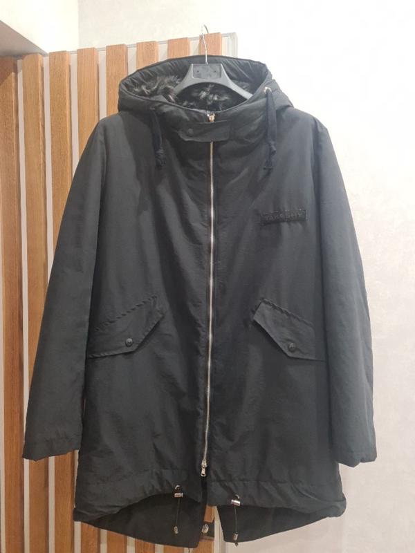Парка очень стильная и современная. Сделана из качественной водонепроницаемой, плотной ткани Утеплитель тинсулейт Капюшон внутри обработан искусственным мехом Карманы на молнии и на кнопке По низу есть фиксаторы по переду и по заду Сидает на L и XL Длина по переду от горловины 75 см По спинке 97 Рукав от горловины 81 Объем по груди под проймой вкруговую 134 см