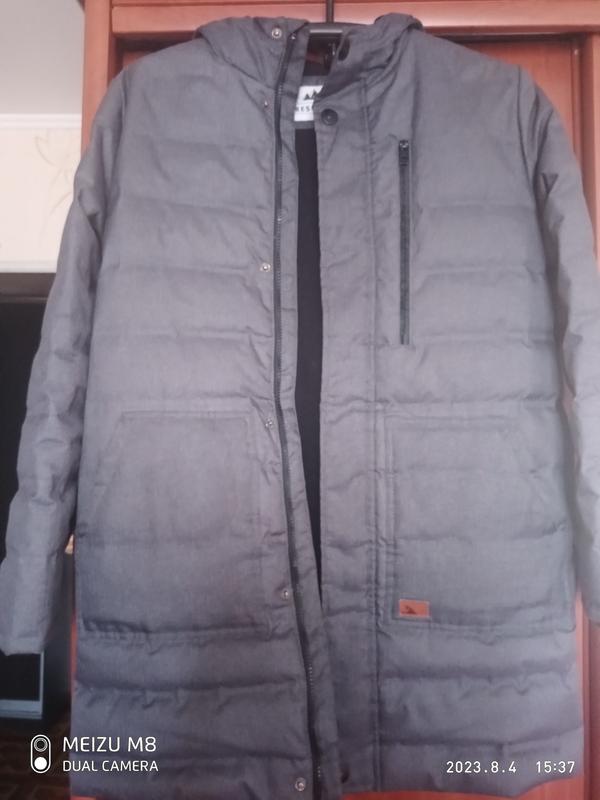 Курточка в очень хорошем состоянии,носили бережно,очень теплая,наполнитель пух,верх100%полиэстер,цвет в жизни темнее чем на фото,все замки ,кнопки рабочие. Замеры: Длинна перед -82см Длинна зад-84см Полу обхват грудь-55см Плечи-44.5см Рукав-61(манжет резинка)