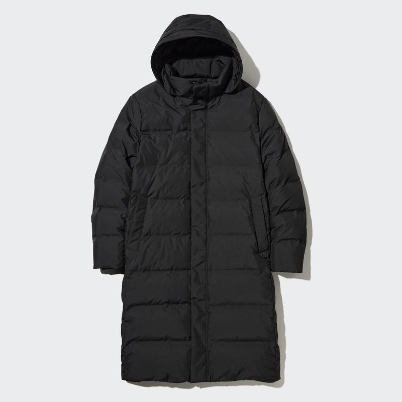 Базовое длинное Зимнее безшерстное пуховое пальто Uniqlo (оригинал с официального сайта). Бесшовное зимнее пальто из серии Seamless Down Coat ▫️идеальное для сильных морозов ▫️матовая поверхность с прочным водоотталкивающим покрытием, на которой не остаются пятна от снега ▫️глубокий капюшон защитит от сильного ветра, не отстегивается ▫️бесшовный, пошитый из цельного куска материи, не пропускает холод в середину ▫️мягкий флис в карманах (мелушка, а приятно). . Наполнитель: пух 90%, перо 10% Fill Power 750+ . Остались вопросы? Нужны замеры по изделию? пиши в дырект. Отправка в день оплаты с окраина Киева. . Обмен <unk> Возвращение <unk> Наложенный платеж