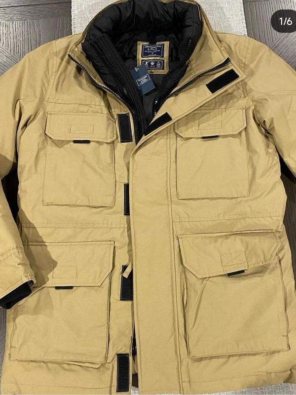 Мужская зимняя куртка от бренда Abercrombie & Fich. Имеет двойную молнию, и застежки на липучках, двойной воротничок. удобные карманы утепления рукава резинкой. Длина рукава 64 см + резинка утепления. Полуобьем под рукавами 55 см.Низ 55 см. Длина по спине от воротничка 76 см Утеплитель полиэстер. Выдерживает температуру до -25