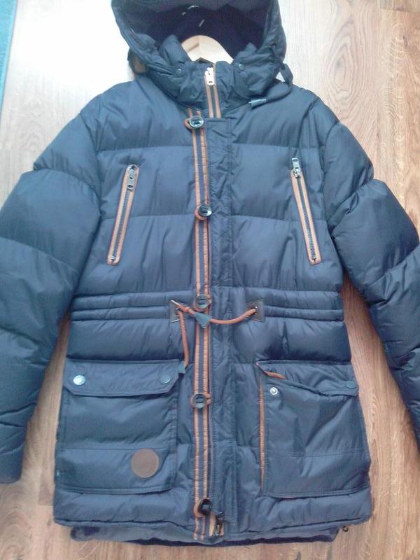 Хороша зимова курточка. Дуже тепла та якісна. Купляла чоловікові одів 1-2рази, поправився. Вона нового вигляду. Тепла, непромокаюча, подовженого плану. Заміри: Об.плечей-50см Об.грудей-58см Холлофайбер Об.пояса-56см, ще є замки які попускають ширину по бокам. Рукав від плеса-68см Довжина від плеча-69см