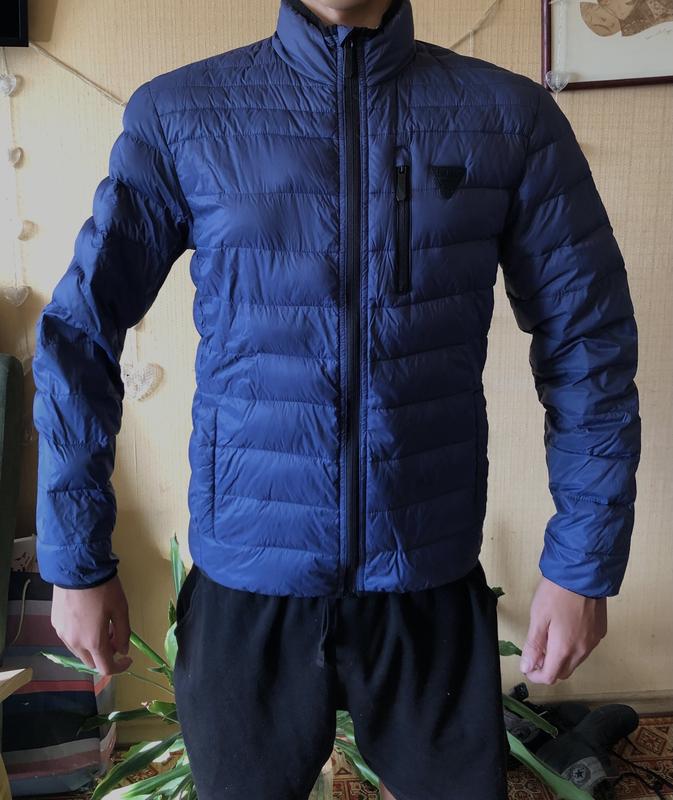 Чоловічий пуховик з натуральним пухом (90% пух, 10% перо). Легенька, але дуже тепла куртка, підходить на невеличкий мороз. Прекрасний вибір для холодних днів, додасть комфорту та тепла у будь-яку погоду. Ззовні темно-синій колір, всередині - яскраво-зелена підкладка. Застібка-молнія, є нагрудна кишеня на молнії та дві внутрішні кишені. Оригінал, розмір М. Стан абсолютно нової куртки. Плечі 47 Ширина під руками 54 Ширина в талії 51 Ширина по низу 53 Рукав 66 Довжина по спині 70