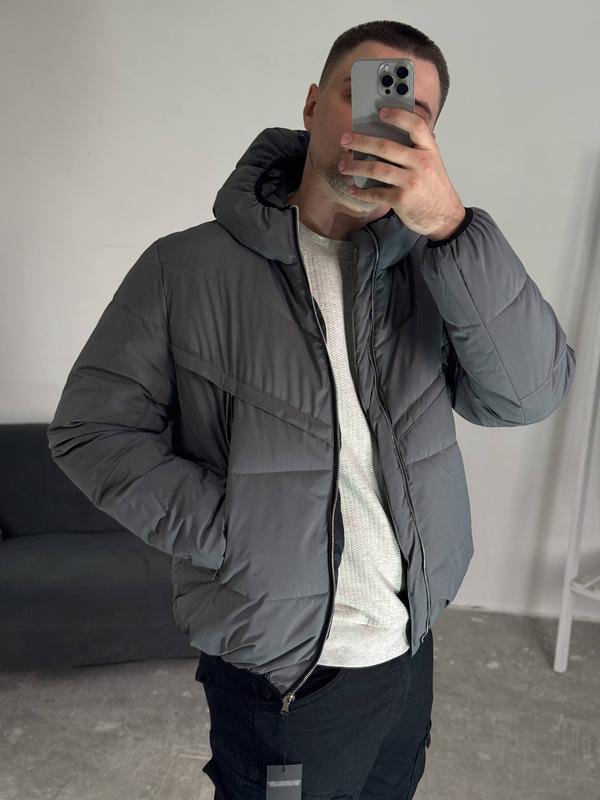 Стильная мужская куртка mild графит из плащевки и утеплителем пух 🔥