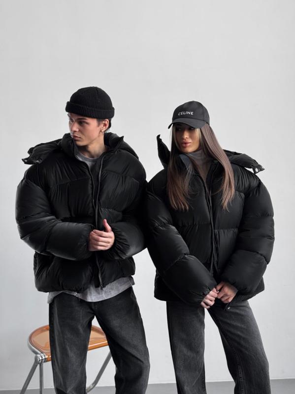 Зимняя оверсайз куртка пуховик бежево черная blaid