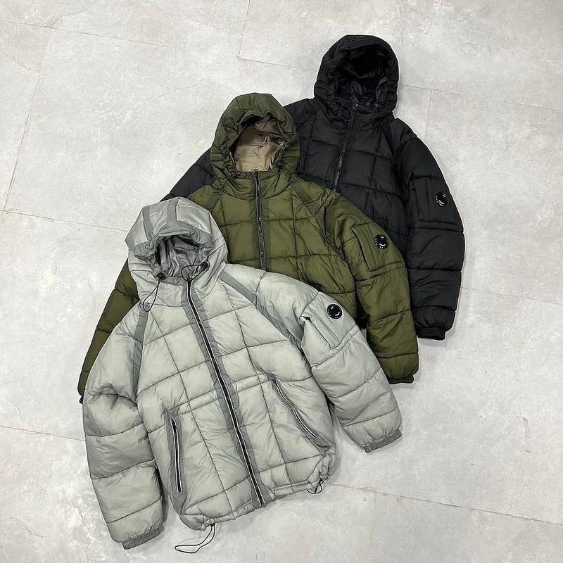 Зимняя дутая куртка c.p. company с линзой, теплая мужская куртка на молнии с капюшоном