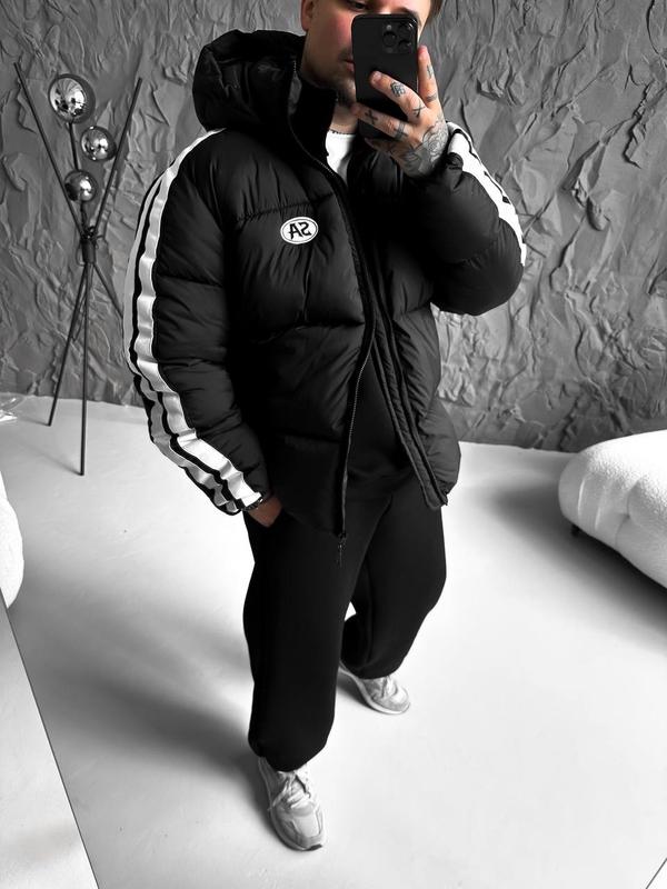 Чоловічий зимовий пуховик без капюшону, зимова куртка дута, теплий пуфер зима, стильний пу...