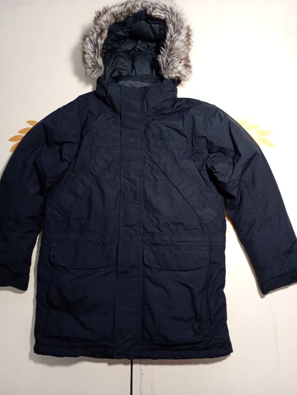 отличная пуховая парка на зиму. Мех на капюшоне съемный. 100% оригинал. Набивка пуха 550. ПОГ 59 см рукав от плеча 64 см от ворота по спине 88 см Плечи 55 см