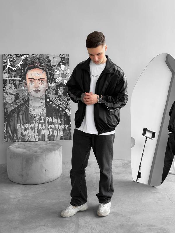 Ветровка новинка🫡 👁🗨Артикул: wt11 ◾️Размеры: S-M-L-XL ®️Сезон: осень, весна ©️Цвет: черный ©️Материал: плащевка ☑️Детали: - боковые карманы - манжет рукав - воротник с подгибкой - кант рукав и лампас - пояс резинка