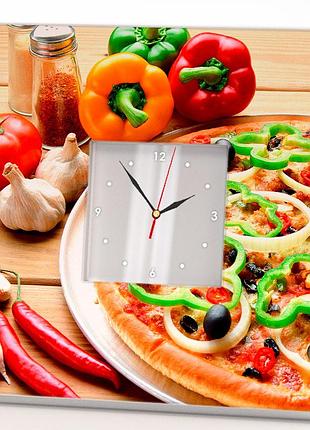 Годинник із дзеркальним циферблатом "красива піца" на кухню в бар кафе ресторан