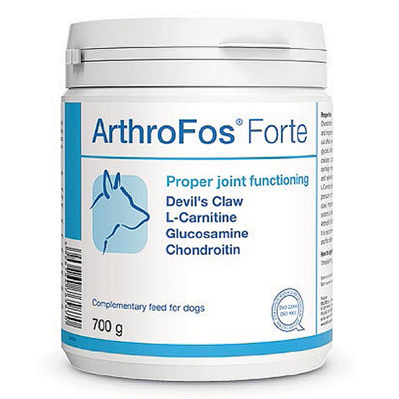 Витаминный комплекс для регенерации хрящей, суставов и связок для собак Dolfos ArthroFos Forte 700 гр. Долфос Артрофос -- это специальный лечебно профилактический комплекс, предназначенный для регенерации хрящей, суставов и связок. Главными действующими веществами являются природные составляющие хрящевой ткани -- хондроитин и глюкозамин, которые легко всасываются в поврежденный хрящ, повышают его гидратацию, увеличивая эластичность и поддерживая его механическую сопротивляемость. Благодаря противовоспалительному действию глюкозамин снижает болезненность и предотвращает воспалительные процессы в суставах. Витамин C, макро- и микроэлементы имеют большое значение в поддержании нормальной структуры эластина и участвуют в образовании коллагена, главного компонента суставного хряща. Минералы в хелатной (легкоусвояемой) форме увеличивают активность ферментных систем в хондро- и остеобластах и ускоряют белковый обмен, в результате чего контролируется физиологически нормальный рост хрящевых тканей.