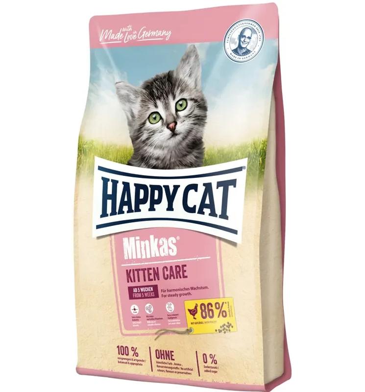 Happy Cat Minkas Kitten Полноценный базовый корм для котят возрастом от 4 недель до 6 месяцев. Особенности состава: сырой протеин - 32%, сырой жир - 18%.