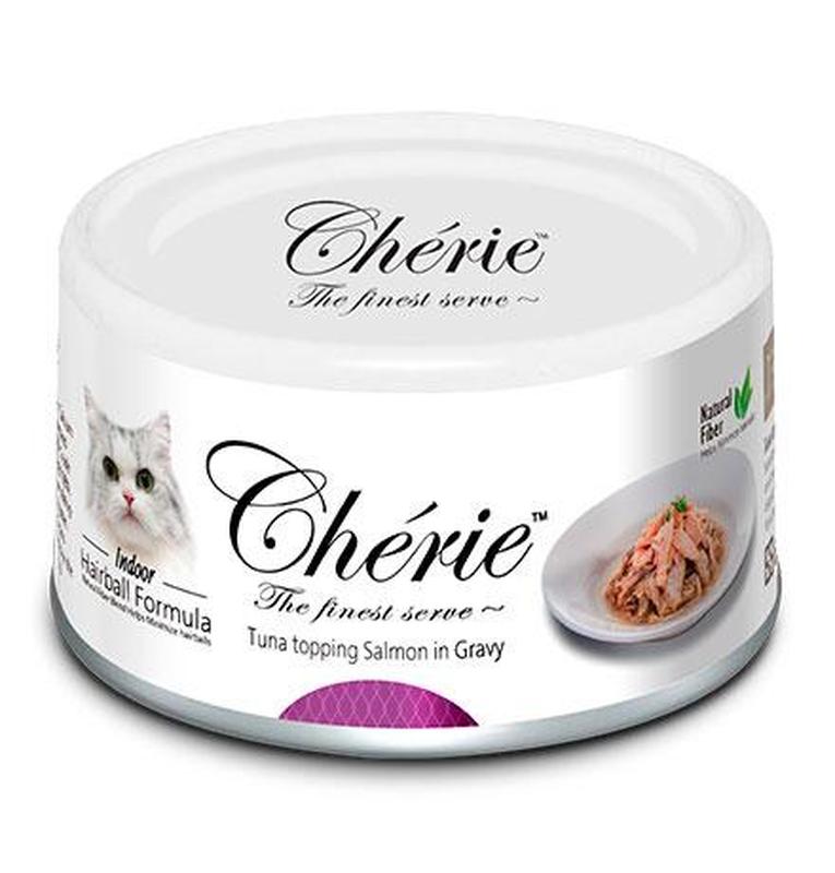 Консервы для котов с тунцом и лососем для контроля образования комочков шерсти cherie 80 г...
