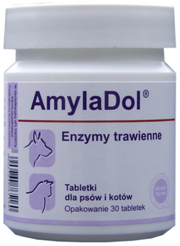 Пищеварительные энзимы для собак и кошек Dolfos AmylaDol 90 таблеток. Свойства и действие: Амиладол содержит натуральные пищеварительные энзимы: липазу, амилазу и протеазы. Препарат стимулирует внешнесекреторную функцию поджелудочной железы, благодаря чему способствует процессам переваривания и всасывания жиров, углеводов и белков. Восполняет нехватку энзимов поджелудочной железы. Показания: - внешнесекреторная недостаточность поджелудочной железы; - хронический панкреатит (воспаление поджелудочной железы); - расстройства пищеварения и всасывания. Суточная дозировка: - кошки и маленькие собаки ― 1 таблетка; - средние собаки ― 2 таблетки; - крупные собаки ― 3 таблетки. Препарат следует подавать во время приёма пищи.