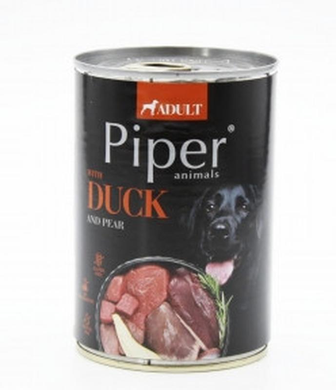 Корм Dolina Noteci Piper Duck&Pear; с уткой и грушей - полноценный влажный корм для взрослых собак всех пород. Мясо должно составлять основу рациона вашей собаки, 65% мясных ингредиентов. Однако стоит обратить внимание и на другие ингредиенты, которые могут оказать положительное влияние на здоровье и самочувствие вашего любимца. ### - Состав составлен таким образом, чтобы обеспечить наличие высококачественных питательных веществ, гарантирующих правильное течение всех обменных процессов. - Утка и ее субпродукты являются ценным источником железа и селена - минералов, играющих важную роль в поддержании правильных функций крови. - Содержащийся в корме утиный жир является ценным источником полиненасыщенных жирных кислот семейства Омега-6, которые прекрасно влияют на состояние кожи и улучшают внешний вид шерсти любимца. - Добавление груши, являющейся источником пищевых волокон, витамина С, К и калия. - Удовлетворяет потребности собаки в витаминах и минералах. - Разработаны в соответствии с современными рекомендациями по питанию для животных. - Не содержит синтетических ароматизаторов, усилителей вкуса и красителей.