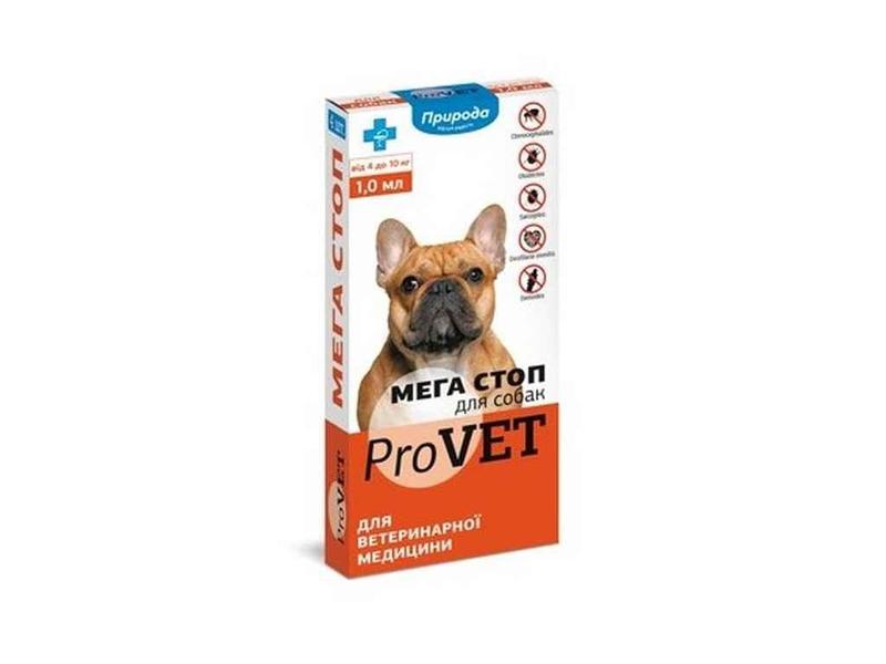 Капли мегастоп provet д/собак 4-10 кг 1уп.(4 п*1мл) в/блих/клещей тм природа