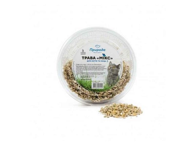 Трава для котов - дополнительный источник витаминов А, В, D, Е и минеральных веществ: кремния, фосфора, калия, кальция, магния, серы, марганца, селена, йода, цинка, брома, меди, - а также растительных волокон, которые стимулируют работу желудка и кишечника, улучшают пищеварение. Трава для котов ТМ «Природа» - это смесь отборных зерен, не подвергавшихся дополнительной обработке. Зерна перемешаны с вермикулитом - минеральным веществом, прекрасно удерживает влагу и способствует быстрому прорастанию семян. Зерновая смесь продается в пластиковом лотке, в котором ее можно и проращивать - вам не понадобится покупать специальный горшок, грунт и поддон.