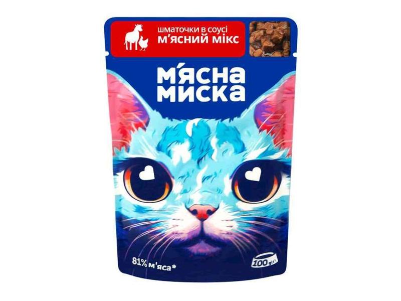 Пауч 100г для котов кусочки в соусе мясной микс тм мясная мыска